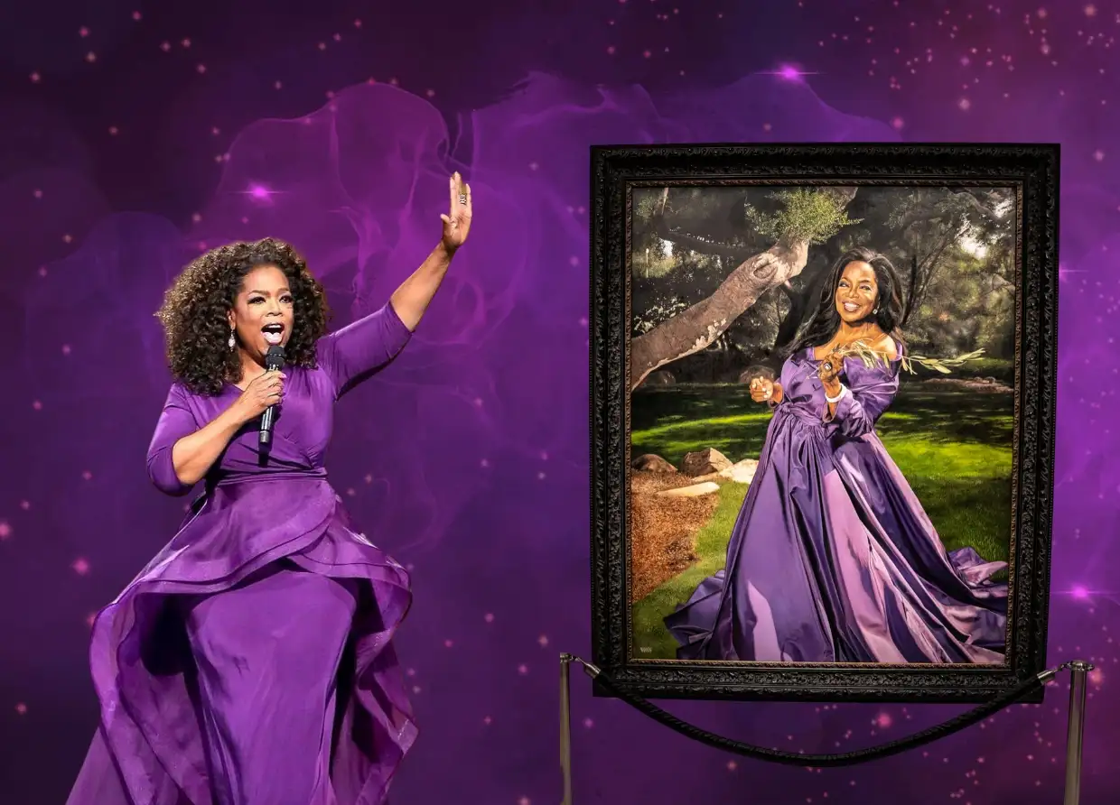 The artistry of empowerment: Oprah Winfrey's iconic portrait takes center stage in a sea of purple