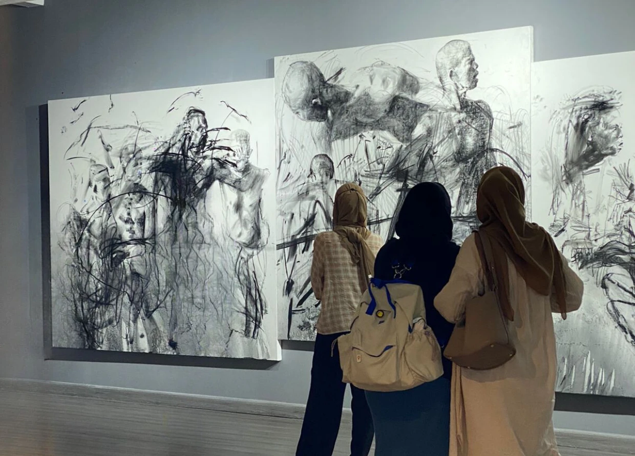 "GARIS OMBAK" presents 15 charcoal paintings on canvas and an installation, with charcoal being a prominent element. These artworks are a result of Iwan Yusuf's recent explorations into the heart of his artistic journey. What sets this exhibition apart is the inspiration behind it: Iwan Yusuf's reconnection with the coastal and maritime life of his hometown in Gorontalo.