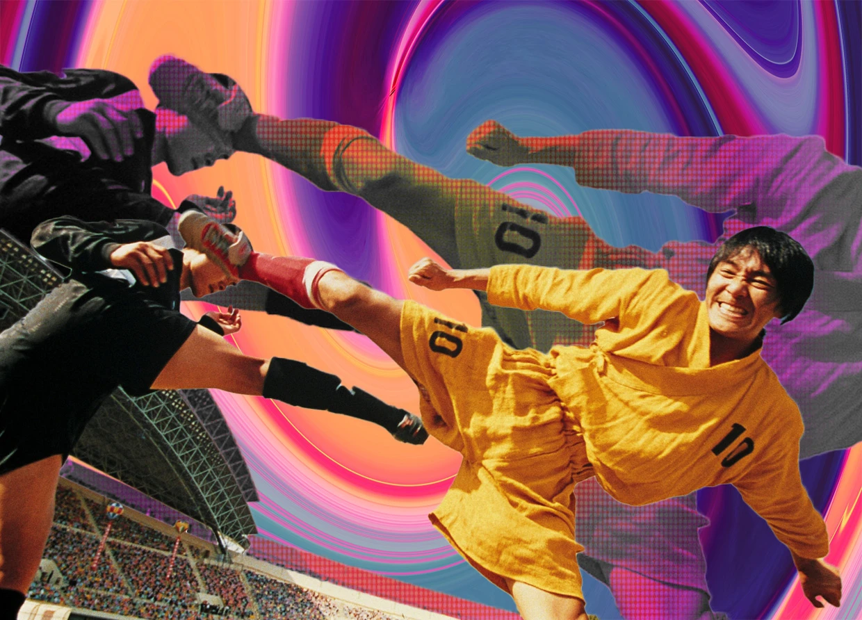 One day, Sing meets ex-pro soccer player 'Golden Leg' Fung (played by the late Ng Man-Tat). Fung convinces Sing that he can achieve his goals through soccer. Sing then gathers his Shaolin brothers to form his very own soccer team and comically wins their first professional competition.